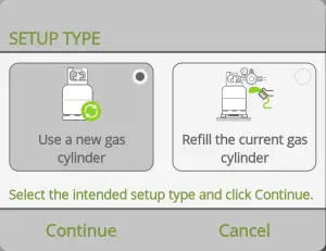 Tap Use a new gas cylinder and the tap Continue.
